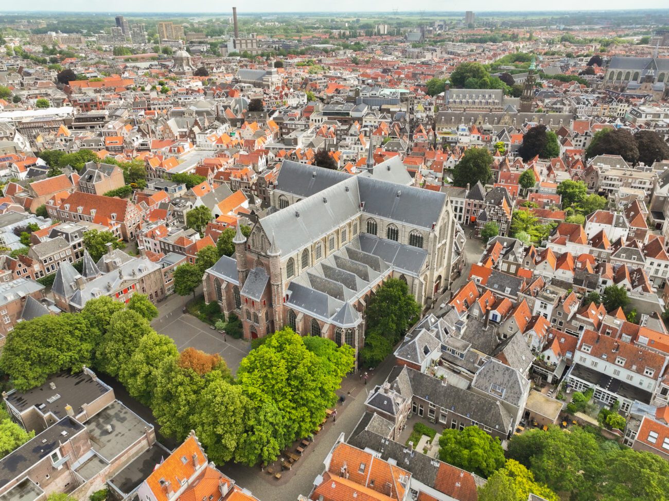 Vanuit de lucht onthult Leiden een geheim dat op straatniveau verborgen blijft: de ware schaal en pracht van haar historische hart. Deze foto vangt de essentie van de stad, met als onbetwist middelpunt de imposante Hooglandse Kerk. Als een stenen reus rust dit gotische meesterwerk te midden van een zee van oranjerode daken, een baken van geschiedenis en architectuur. De … De Hooglandse Kerk: Een Majestueus Monument in het Hart van LeidenLees meer